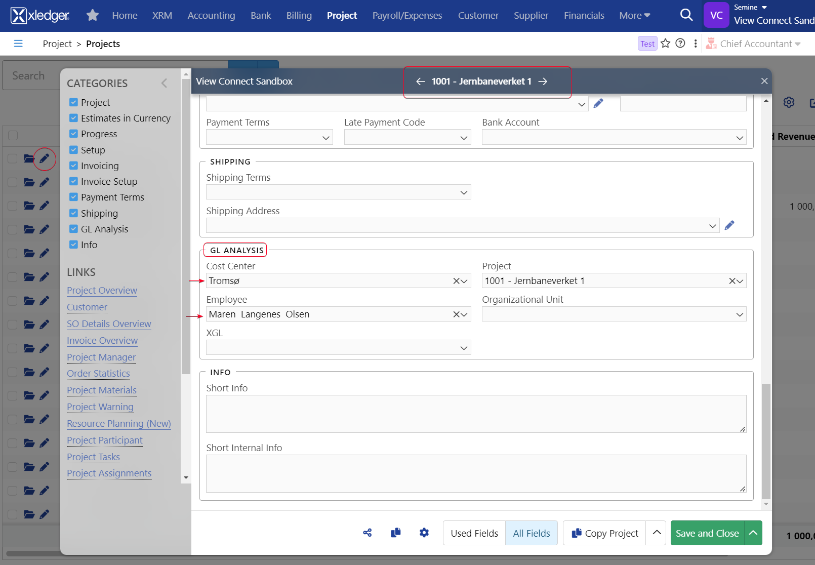 SemineConnect syncs the accounting parameters whose ledger type is of GeneralLedger(GL) and AccountPayable(AP). The corresponding data in Xledger UI is placed on Accounting --> Chart of Accounts --> Chart of Accounts