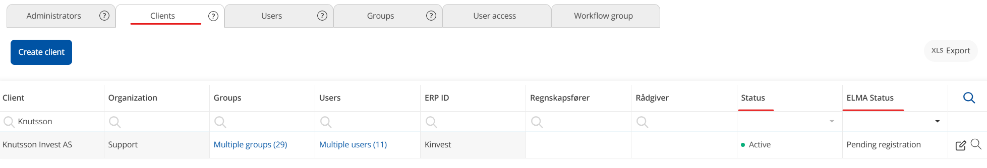 With the ELMA - Admin access role, the administrator can register and deregister companies, having access to all available organization numbers. It's important for the administrator to control which companies are managed.