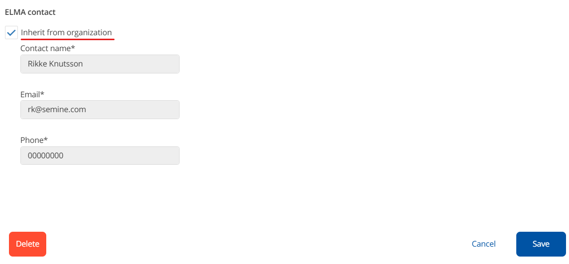 To add or modify the contact person, please navigate to "Edit organization" - ELMA - ELMA contact.