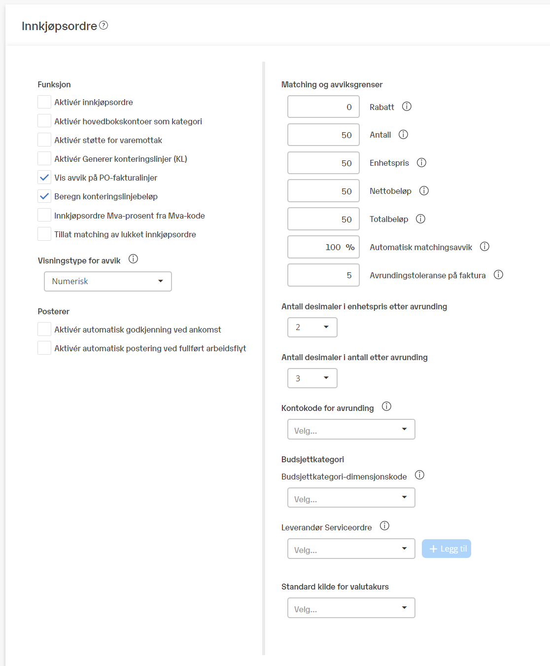 Matchingforslag over grenseverdien vil påføres automatisk på fakturalinjen. - Avrundingstoleranse på faktura